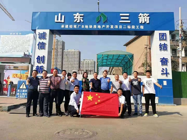 國(guó)慶期間,三箭股份公司領(lǐng)導(dǎo)班子成員及各項(xiàng)目公司經(jīng)理兵分兩路,先后到仁和家園、馨陽(yáng)嘉苑項(xiàng)目、天馬相城、嵐橋大廈、糧食局食品產(chǎn)業(yè)園、齊魯工業(yè)大學(xué)實(shí)訓(xùn)基地、和平廣場(chǎng)、瑞福廣場(chǎng)等在建重點(diǎn)工程進(jìn)行走訪慰問,對(duì)節(jié)日期間仍堅(jiān)守工作崗位的一線員工致以節(jié)日的問候和祝福。走訪前,為慶祝中華人民共和國(guó)成立70周年,股份公司領(lǐng)導(dǎo)班子成員及各項(xiàng)目公司經(jīng)理開展了“我與國(guó)旗合個(gè)影”活動(dòng),發(fā)自內(nèi)心地祝福偉大祖國(guó)國(guó)富民強(qiáng)、繁榮昌盛,集團(tuán)公司蓬勃發(fā)展、再創(chuàng)輝煌。走訪期間,大家在項(xiàng)目上集中觀看了國(guó)慶閱兵式,并紛紛表示為閱兵式的豪邁盛大而震撼,為祖國(guó)強(qiáng)大而驕傲,抒發(fā)了愛國(guó)情懷。走訪期間,公司領(lǐng)導(dǎo)重點(diǎn)要求抓住近期這段建筑黃金季節(jié),合理安排工序,科學(xué)組織生產(chǎn),提前考慮揚(yáng)塵、冬季施工、材料供應(yīng)不及時(shí)等不利因素,確保工程按照計(jì)劃順利完成。